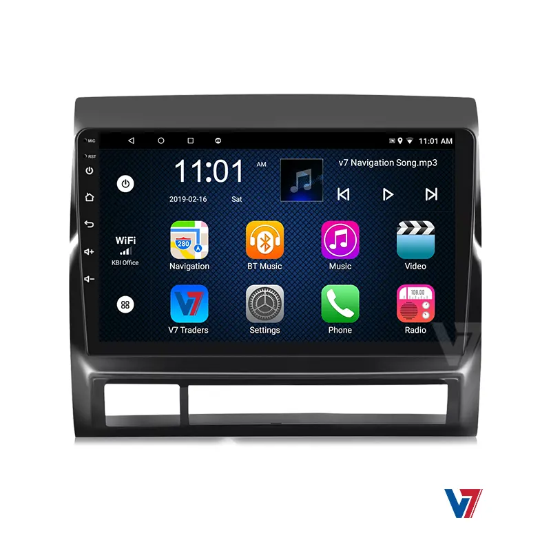 Transform your Toyota Tacoma 2 2005-15 with high-quality 10.1 inch V7 Android Double Din Car Stereo with Wireless Apple CarPlay and Android Auto, Touch Screen Android Radio & Head unit. Our wireless double DIN units offer modern features, providing a fast and reliable solution for a more enjoyable and convenient driving experience. Experience safe, smart, and comprehensive control with Apple CarPlay and Android Auto. USB mirroring allows you to display and control your Android smartphone directly on the V7 Android screen. Enjoy optimal sound performance, and enhance safety with an optional rear-view camera for better visibility while backing up and monitoring your vehicle.